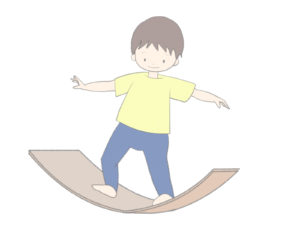 バランスボードは、ボードの上でバランスをとりながら多様な動きに挑戦できるおもちゃです。立ってバランスをとるだけでなく、座ったまま揺れたり、ボードをシーソーのように使ったりと、多くの遊び方ができます。
