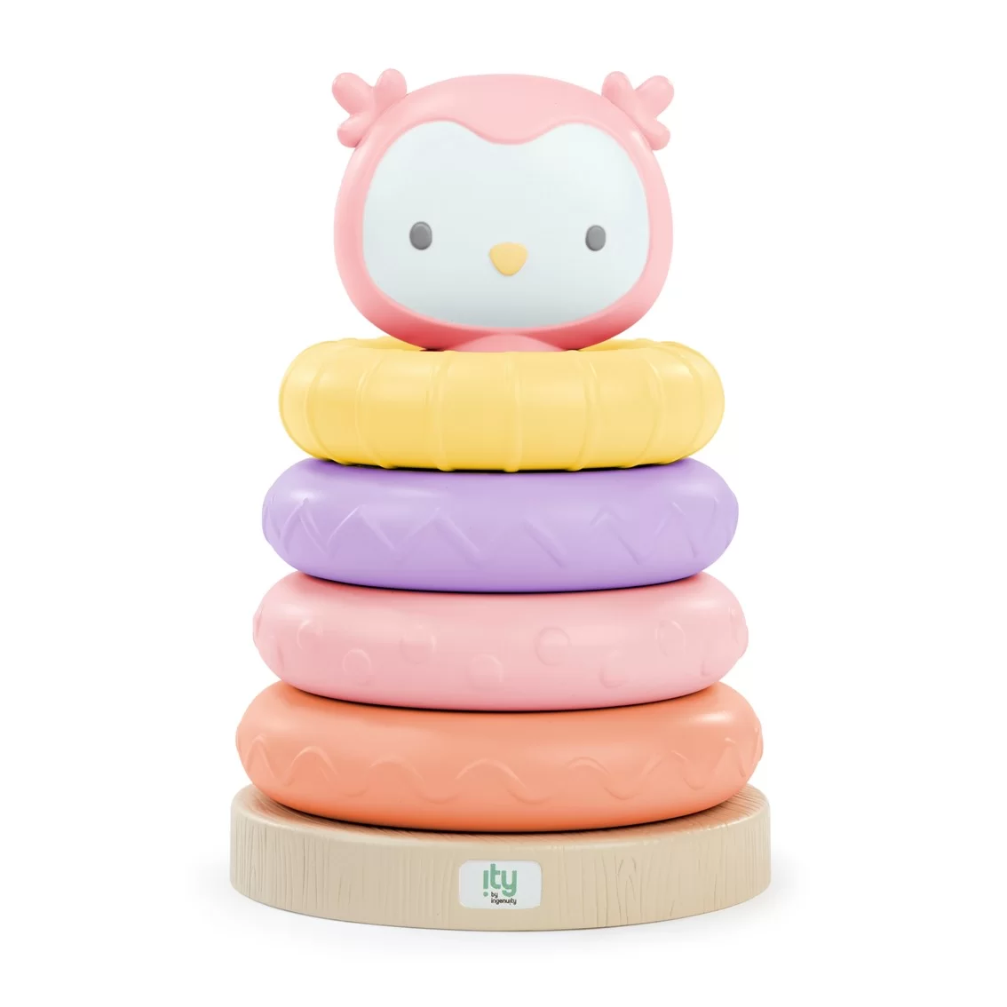 小さな赤ちゃんの手でも持ちやすいサイズのリングスタッキングトイです。はじめての積み重ね遊びにぴったりのおもちゃです。