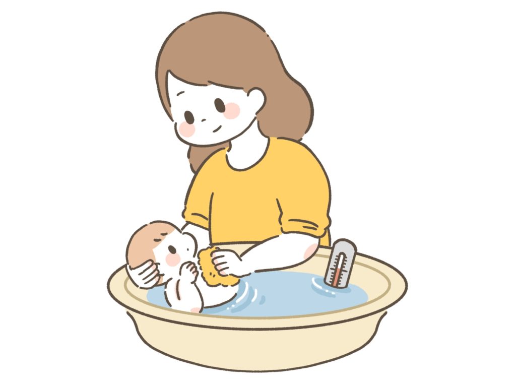 入浴は体力を消耗しやすいため、湯船に入る時間は5分以内に留め、赤ちゃんの様子を常に確認しながら進めましょう。