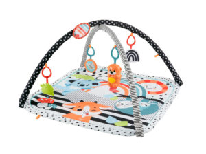フィッシャープライスの人気シリーズで、カラフルなデザインが特徴のミュージカルジム!プレイマットは洗濯機で丸洗いできるため、衛生面も安心です。