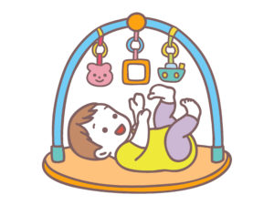 吊り下げおもちゃを見つめたり、音楽やガラガラの音に耳を傾けたりすることで、視覚と聴覚が刺激されるのです。また、手足をバタバタと動かすことで、自分の体を認識する大切な時期でもあります。