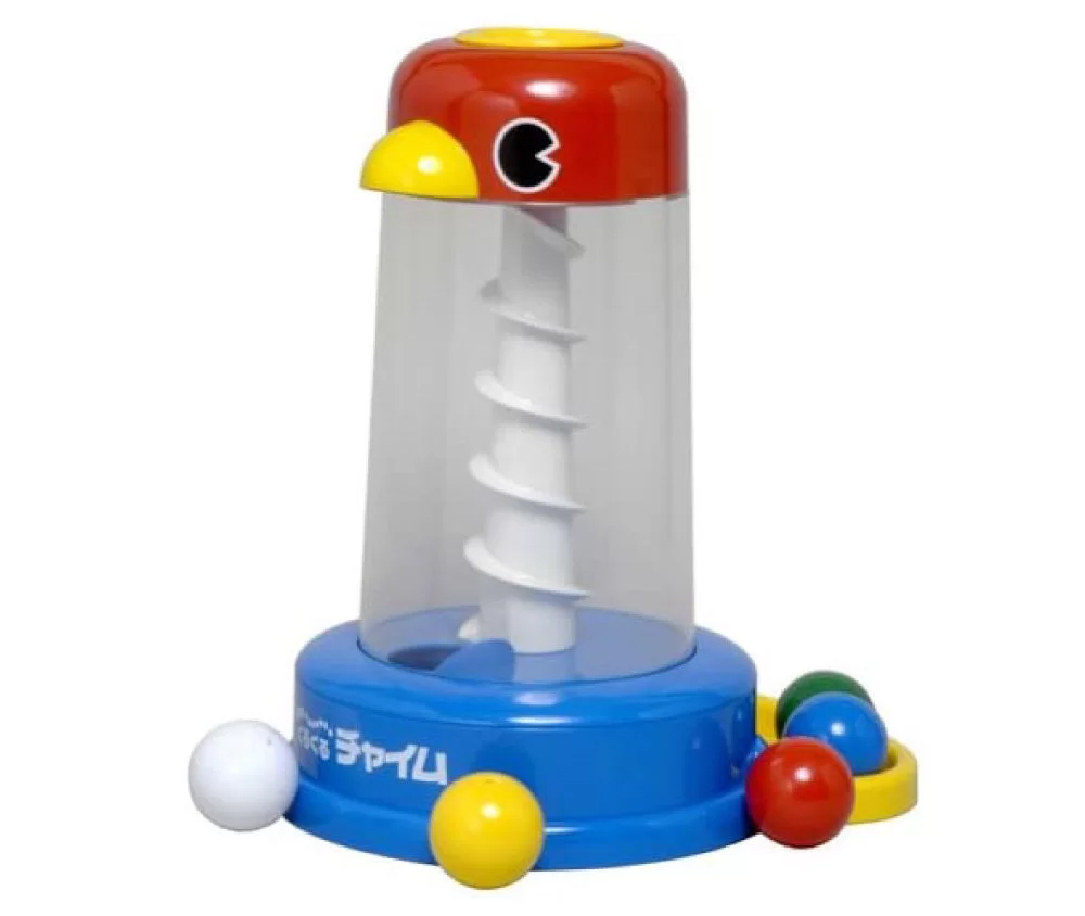 どの年代にも大人気のくるくるチャイムです。ボールを上から落とすとくるくる回ってチーンと音を鳴らして出てきます。ポトン・クルルン・ポロロンのこの繰り返しに、もう夢中!乳幼児にとって難しい「ボールをにぎって、はなす」という動作が自然にでき、この動作を繰り返すことで手先の器用さと集中力、好奇心を促します。しっかりした作りで、シンプルながら長く遊べるおもちゃです。