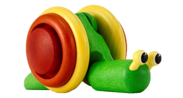 歩き始めの子どもにぴったりな木のプルトイです。ひもを引っぱると、かたつむりが体を上下にさせながら進みます。子どもの動きに合わせて、反転します。紐を引っ張って一緒にあるくことで楽しみながら歩行を促します。