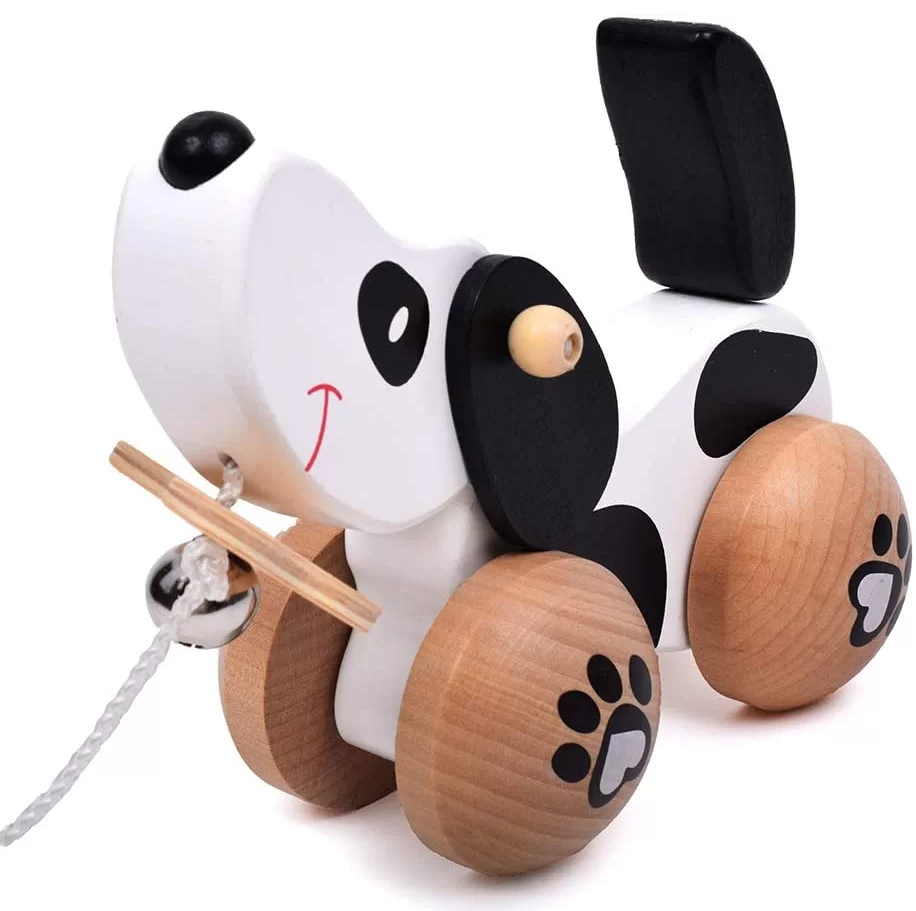 一緒にお散歩が楽しい木製プルトイです。ひもを引っ張ると踊るように左右に体を動かして進むパピーは、子供たちの楽しいお友達です。一緒に引っ張りながら歩くことで、歩行を促進します。