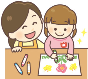 「お空を上に描こう」「ママの絵はパパの絵より大きく描いてみて」など、位置や大きさを意識させる声かけをして空間認識能力を伸ばしてあげてください。