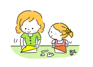 紙を折って立体を作る折り紙やさまざまな物を組み合わせる工作あそびは、空間認識能力を育てる理想的な遊びです。