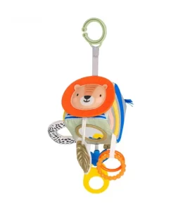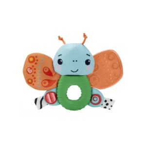 カラフルなちょうちょのデザインが目を引く歯固めです。片方の羽はカシャカシャと音が鳴り、もう片方は噛み応えのある設計です。また、白黒の模様が視覚の発達にも役立ちます。さらに、アルコール消毒にも対応しています。