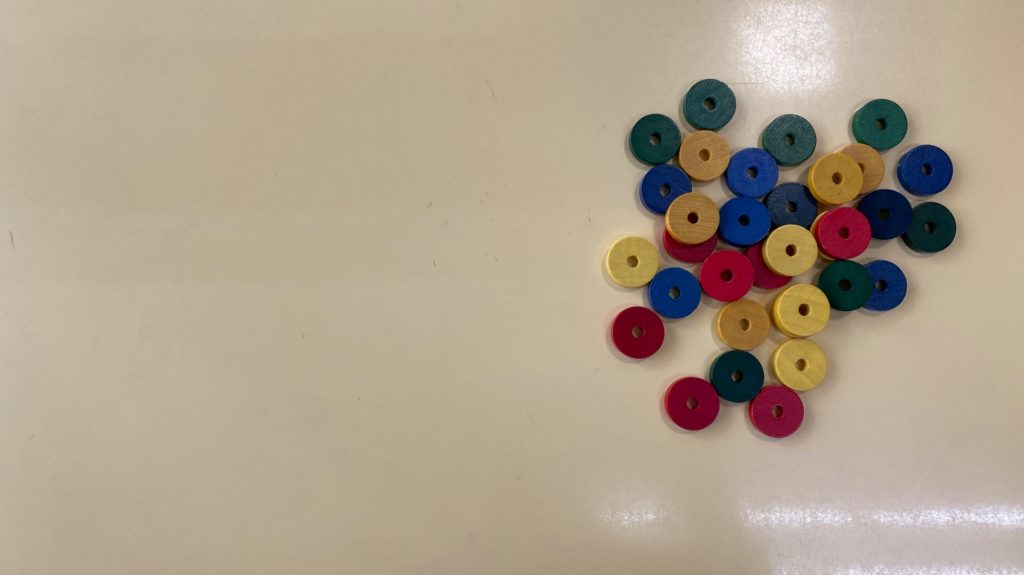 ②少しずつ慣らす: 初めて紐通しに挑戦する際は、ビーズやパーツの数を少なくしてあげましょう。 無理にやらせるのではなく、「楽しそう!」「やってみたいな」と思える雰囲気づくりが大切です。