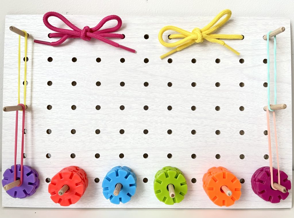 ボードに開けられた穴に紐を通して模様や絵を描くように遊ぶタイプ。