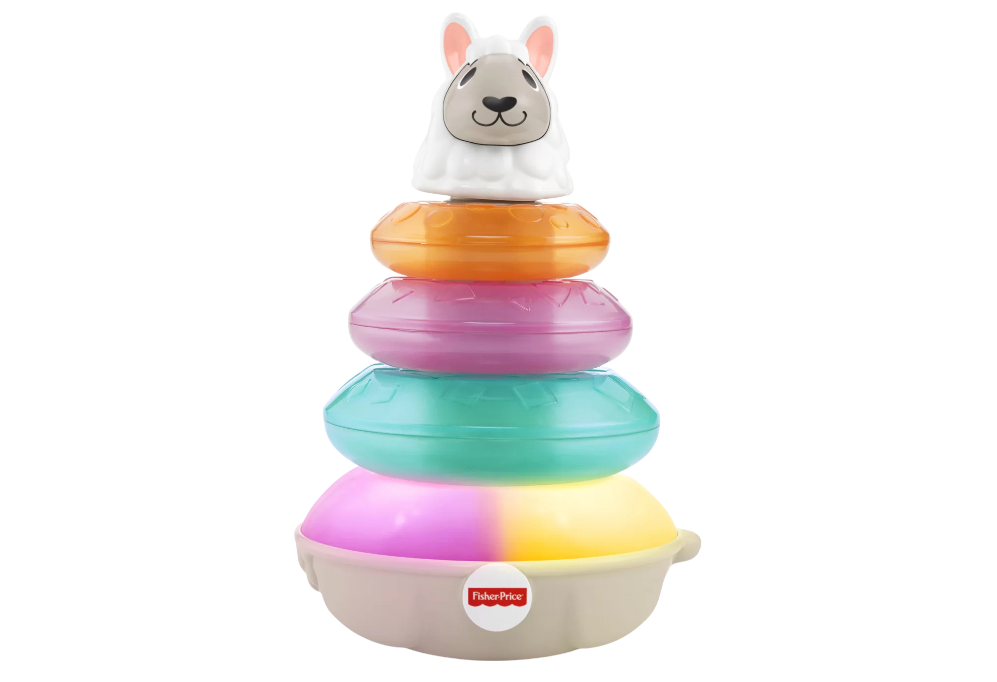 カラフルなリングを重ねるとゆかいなおしゃべりやサウンド&ライトで楽しく遊べます。積み重ねで遊ぶことで物の大きさや順番を自然に学べて、ラマの頭を押すとカラフルにライトアップしながら色や数を日本語と英語で歌います。他のリンキマルズシリーズと連動しても遊べるので、遊びの幅が広がります。重ねるごとに反応してくれるため、一人でも楽しく遊べて、触覚・視覚・聴覚をフルに刺激する知育玩具です。