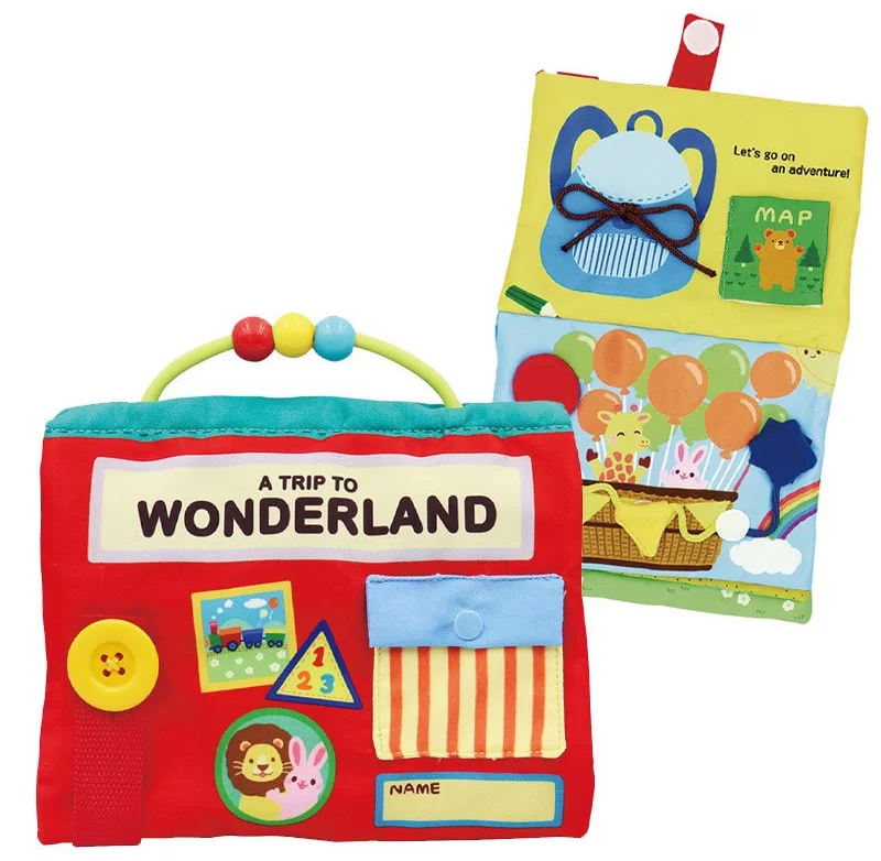 リボン結び、ジッパーの開閉、ボタンがけ、数字カウント、形あそび、ミラーなど仕掛けが盛りだくさんの布絵本です。しかけ遊びを通して、くらしの中で必要な手の動かし方や知識を楽しみながら自然と学ぶことができます。ページをめくるたびに色んな動物が現れて、数字の認識を促しつつ、物語を自分で作ることもできます。持ち運びに便利な持ち手つきで、お部屋の中はもちろんおでかけ先でも楽しめます。